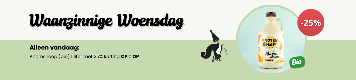 Niks is lekkerder dan vers gebrande noten of vers geroosterde noten. Wij branden en roosteren onze notenvarianten elke dag zelf voordat wij ze verpakken. Verser kan haast niet! In ons assortiment vindt u ook diverse biologische noten en natuurlijke producten. Deze producten zijn 100% biologisch en vrij van extra toevoegingen. Ontdek de lekkerste superfoods, pitten & zaden, muesli & granen, bakproducten en meer tegen zeer scherpe prijzen en bestel gemakkelijk online!